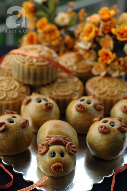 K tomuto svátku neodmyslitelně patří i Bánh Trung Thu [báň čung thu], pro některé z vás známěji pod názvem moon cakes. Tyto koláčky jsou v průměru kolem 10 cm velké a chuťově rozmanité. Jejich náplně mohou být jak sladké, tak i slané. Ve Vietnamu se už začínají prodávat už začátkem léta, a tak jestli budete pobývat mezi červnem až září ve Vietnamu, narazíte na ně doslova na každém rohu.