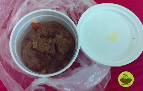 Jako první jídlo jsme si zvolily Thịt bò sốt vang, což přeložili jako tradiční vietnamské hovězí ragú. Objednávka přišla rychle do 30 minut, s obalem a převzetím jídla nebyl nejmenší problém. Co nás ale velice překvapilo, byla absence rýže jako přílohy. Očekávaly jsme automaticky, že k hlavnímu jídlu za 159 Kč dostaneme i přílohu, ale mýlily jsme se. Pokud si budete objednávat stejný pokrm, nezapomeňte si tak objednat i rýži :)