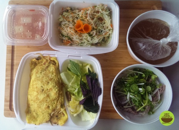 Při druhé objedávce jsme se rozhodly pro Phở bò tái (přeloženo jako tradiční vietnamská nudlová polévka s plátky středně syrového hovězího), Nộm su hào (přeloženo jako vietnamský salát) a Bánh xèo (přeloženo jako tradiční vietnamská rýžovo-kokosová palačinka s krevetami a vepřovým masem). S rozvozem jsme opět neměly nejmenší problém, objednávku jsme obdržely do 40 minut.