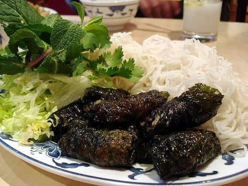lá lốt) a následně dozlatova osmaženy. V Yen Nhi je podávají s rýžovými nudlemi
