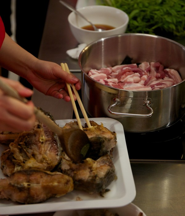– U pokrmů upravených technikou kho je běžné, že jsou trochu slanější, protože to bývají hlavní pokrmy k rýži (tedy obvykle se samostatně bez rýže nejedí). Ostatní jídla, která bývají současně na stole - např. restovaná zelenina, jsou spíše takovým doplňkem a mohou se jít samostatně bez rýže, proto jsou dochucené tak akorát. Nebojte se toho, že bude vaše cá kho trochu slanější.